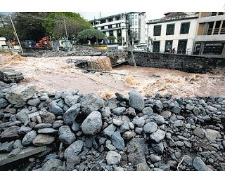 A população da ilha da Madeira, ilha portuguesa situada no Oceano Atlântico, sofreu uma intempérie neste passado sábado: um dilúvio que arrastou tudo e todos, nada escapou à fúria das águas: lama, troncos, carros, pedras enormes rolaram com a água... casas caíram, pontes caíram, estradas desapareceram, carros ficaram destruídos como se fossem de papel, ribeiras galgaram com violência as suas margens e inundaram a cidade do Funchal e muitas outras populações desta ilha.