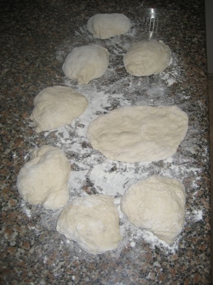Quando o programa terminar, polvilha-se a bancada com farinha (para a massa não pegar) e retira-se a massa da cuba da MFP para a bancada.