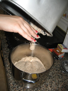 Para fazer a massa do pão, basta usar a receita de pão básico (500g de farinha para Pão Caseiro da Nacional e 320ml de água morna - programa Massa). A receita do Pão Básico já a tinha publicado aqui, mas neste caso só queremos fazer a massa.