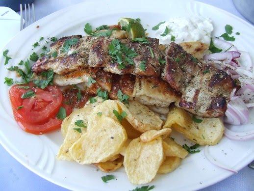 Nesta foto podemos ver um prato de Souvlaki que fotografei antes de o comer.