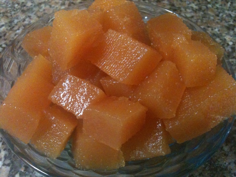 Aqui vos mostro a foto da minha marmelada cortada aos cubinhos: