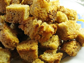 Os croûtons industrializados, de compra, não têm nada a ver de sabor com os que são confeccionados em casa, por isso aqui lhes deixo a minha sugestão de confeccionar croûtons, quando tiverem sobras de pão em casa.